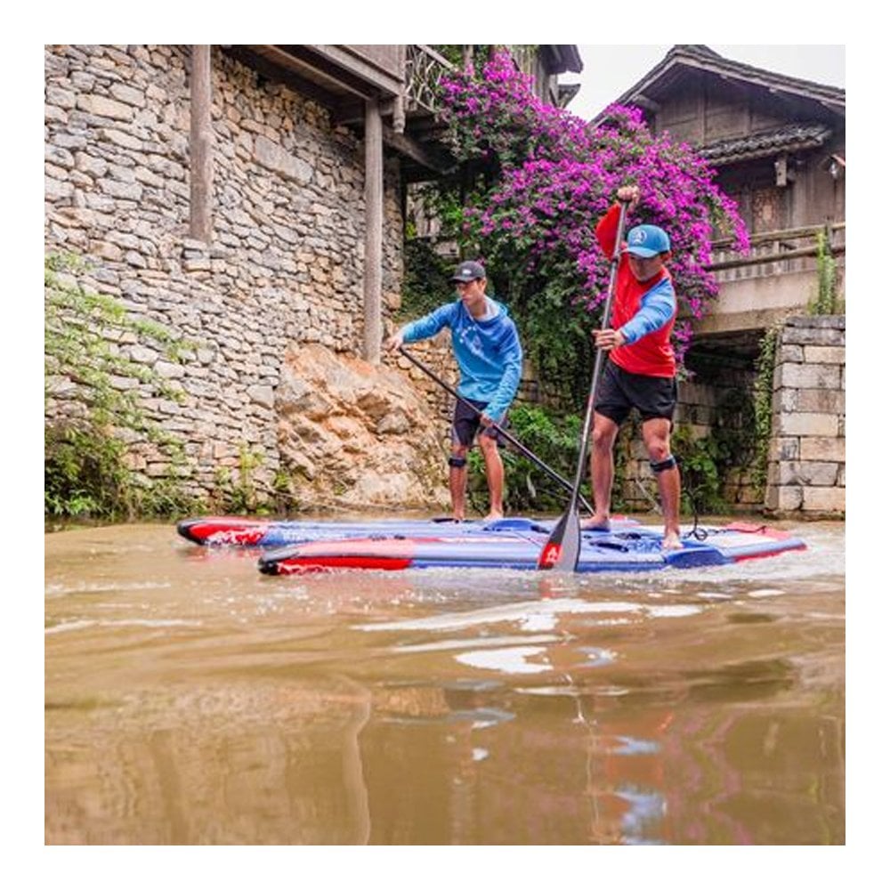Designed to be a top contender in inflatable racing, this board offers just enough stability for control in choppy waters while maintaining high speed and efficient tracking. The carbon stringer enhances rigidity, and the narrow tail provides a hardboard-like performance.