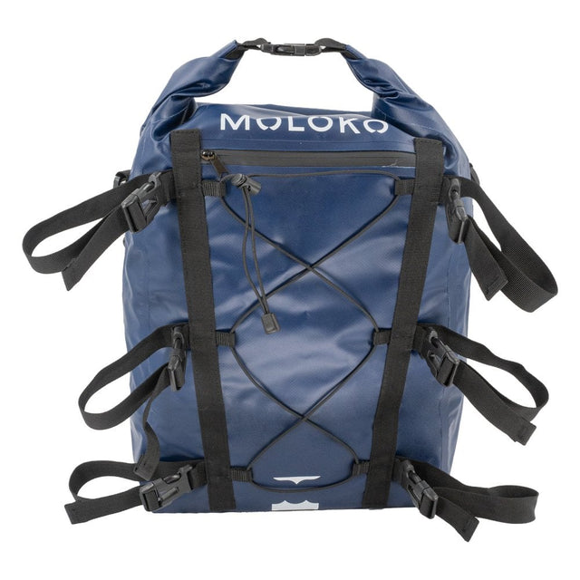 The Moloko Pro Deck Bag is a 20-litre roll-top dry bag that is waterproof and protects your gear from sand and dirt too. With a large selection of fully adjustable securing points, this deck bag compliments not only Moloko paddleboards but also any other brand. Once secured, you can easily access your gear through the large roll-top opening and find what you need. For items that you need to access more quickly and don’t require the full waterproof protection the bag offers, there is the exterior bungee tie-down with a tensioner.