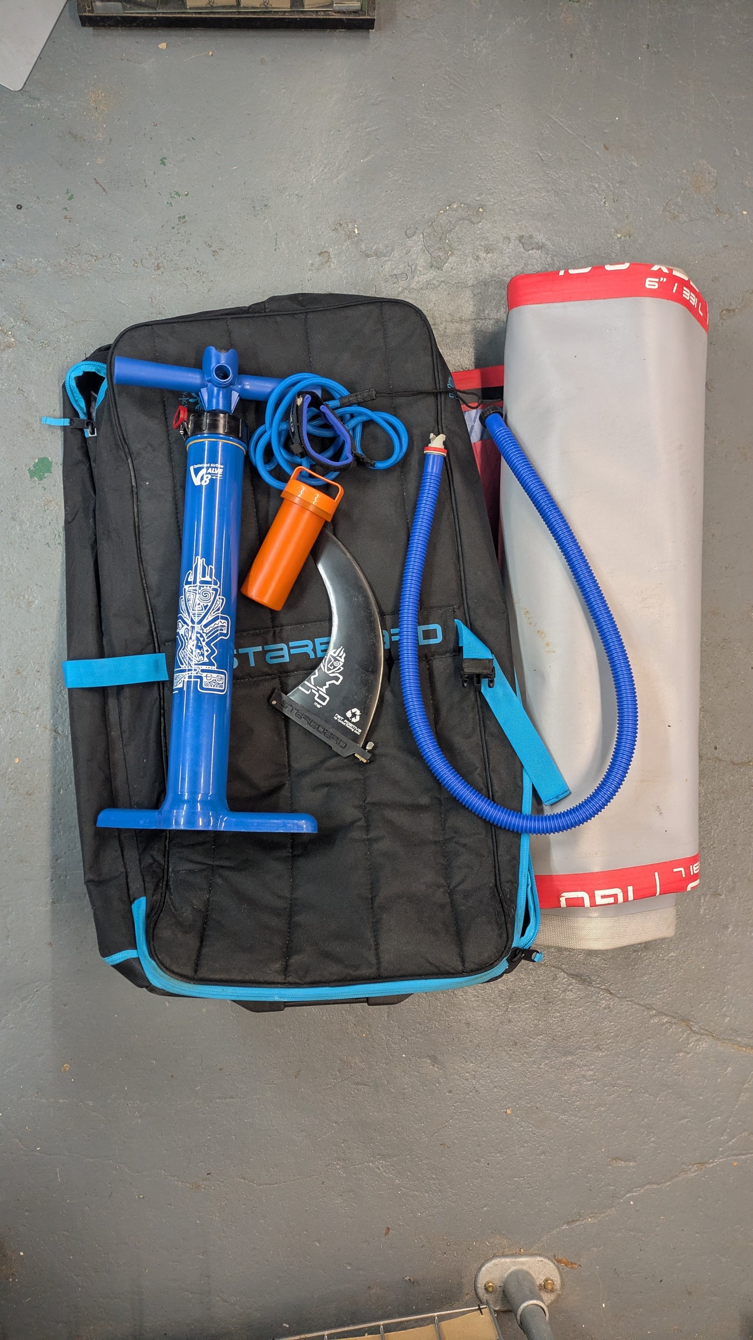 Condition: Excellent. It has been cleaned and fresh-water rinsed after every use. You may find very minor cosmetic marks from being packed into the bag, but the board is 100% airtight with no repairs or damage.