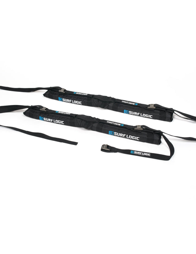 Soft racks are one of those necessary evils in life. They are there to get you out of a pickle. We mostly use them on rental cars when the choice is soft racks or having no space in the car. This is a double rack allowing you to put a load of boards on the roof.