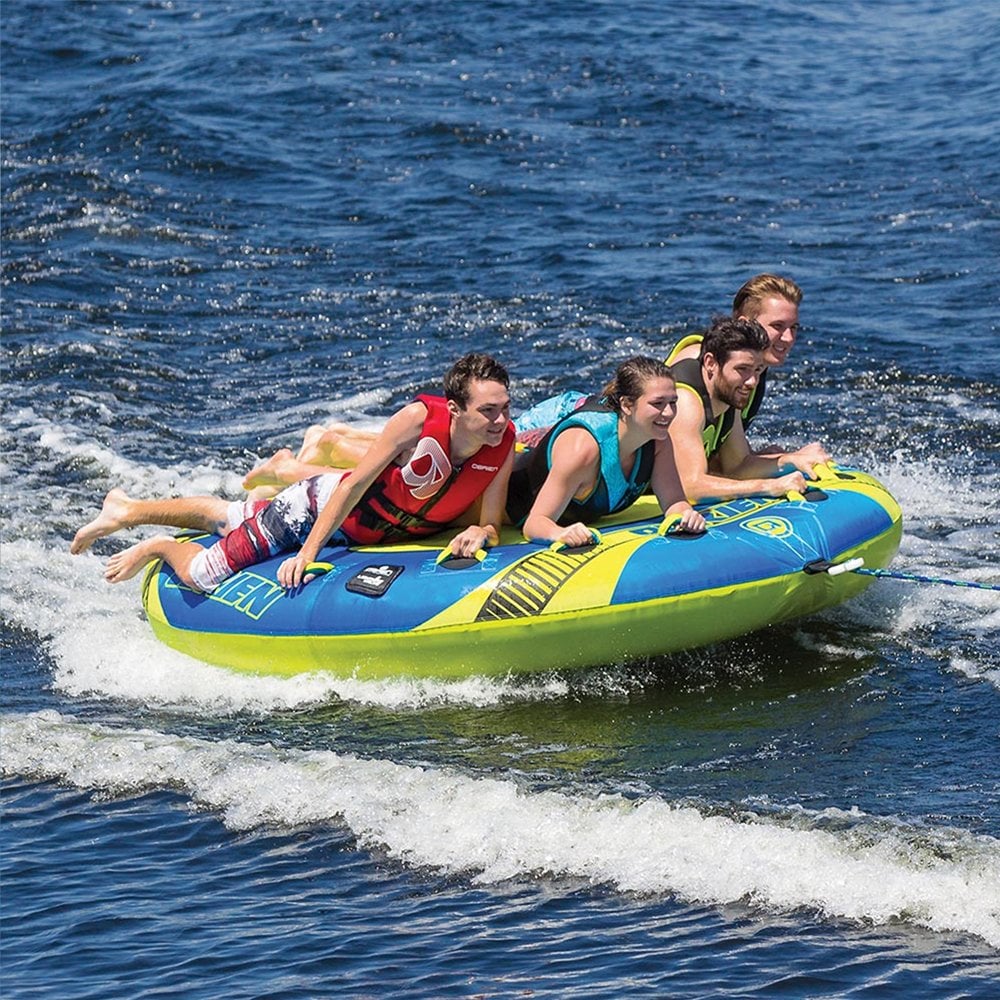 The X-Scream produces plenty of screams and laughter while up to four riders get whipped out and bounced around on the water. The flat deck with its durable EVA pads is very comfortable to lay or kneel on as the riders grip the handles and adjust for any upcoming challenges headed their way. For classic excitement and fun, the X-Scream is a sure thing!